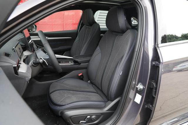 座椅采用翻毛皮与皮革拼接材质,兼顾透气性与摩擦力,提供良好的舒适性与支撑性。前排座椅支持电动多向调节,并配备座椅通风及加热功能,可适应不同季节与驾乘需求。得益于2800mm超长轴距,车内纵向空间表现优异,后排乘客可享充裕的腿部伸展空间。常规状态下,500L后备厢容积满足日常载物需求,整体空间实用性达到中型轿车主流水准。